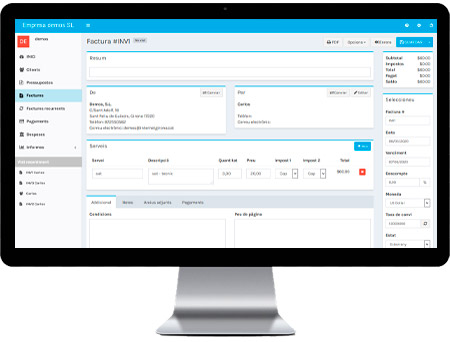 S'inclouen configuracions i plantilles predeterminades, però tot és molt personalitzable. Les plantilles de factura i pressupost són HTML i CSS estàndard i tota la resta es configura.